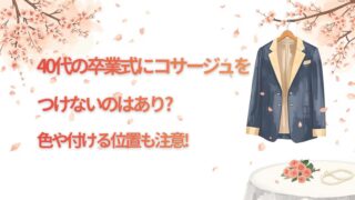 40代で卒業式にコサージュをつけない装いは特に問題なく、パールやブローチなどで華やかになればOK!!この記事ではコサージュの有無以外にもチェックしたい色使いや付ける位置など解説しています。子供の晴れ舞台を、上品な装いで盛大に祝いしましょう♪